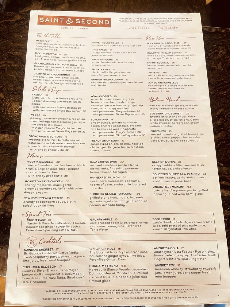 Introducing Saint & Second, a trendy New American restaurant in Long Beach, CA. This restaurant offers a diverse menu with limited vegetarian options, along with a full bar, outdoor seating, and happy hour specials. Customers praise the beautiful ambiance and friendly service, making it a great spot for happy hour or a casual meal with friends. The food receives high praise, with dishes like colossal shrimp and fresh oysters standing out. Although some customers have noted minor issues with certain dishes, overall, Saint & Second is a popular choice for those looking for a chic yet relaxed dining experience. Don't miss out on the opportunity to try their delicious food and enjoy the fantastic sunset views from their top floor seating area!